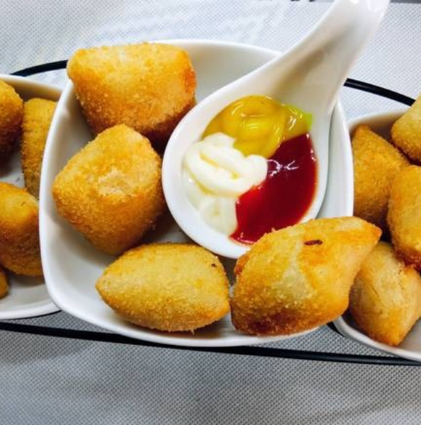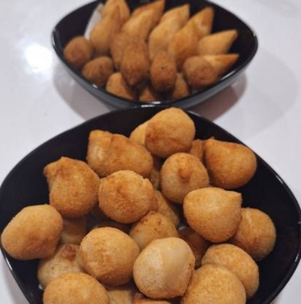 13 bolinhas de queijo e 12 coxinhas vegetarianas